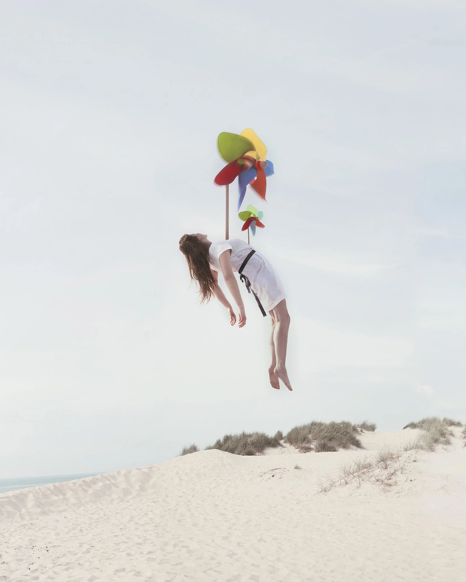 Between imaginary realism and childhood memories, the lightness of being and support of timeless objects are carrying away these women in levitation.